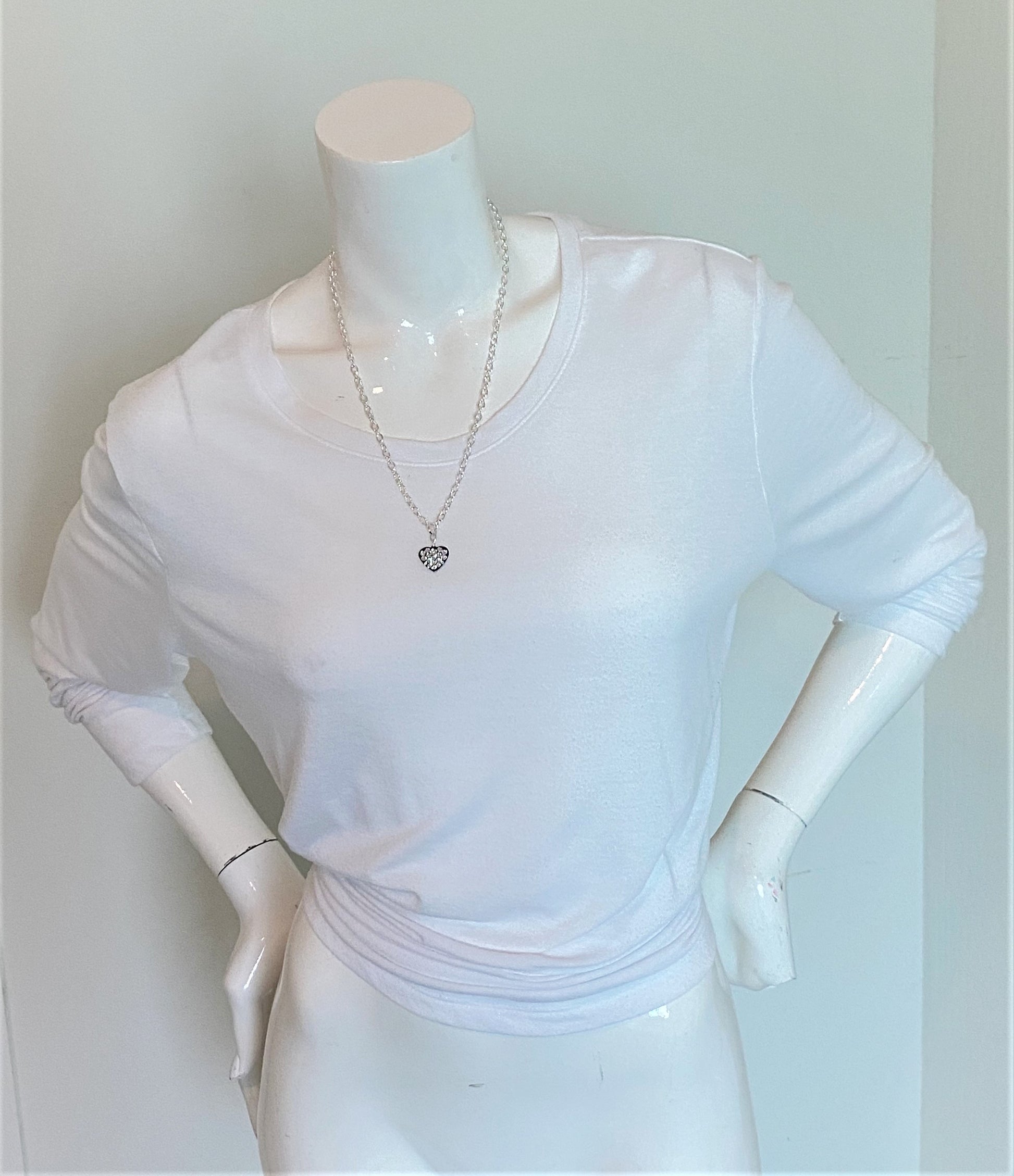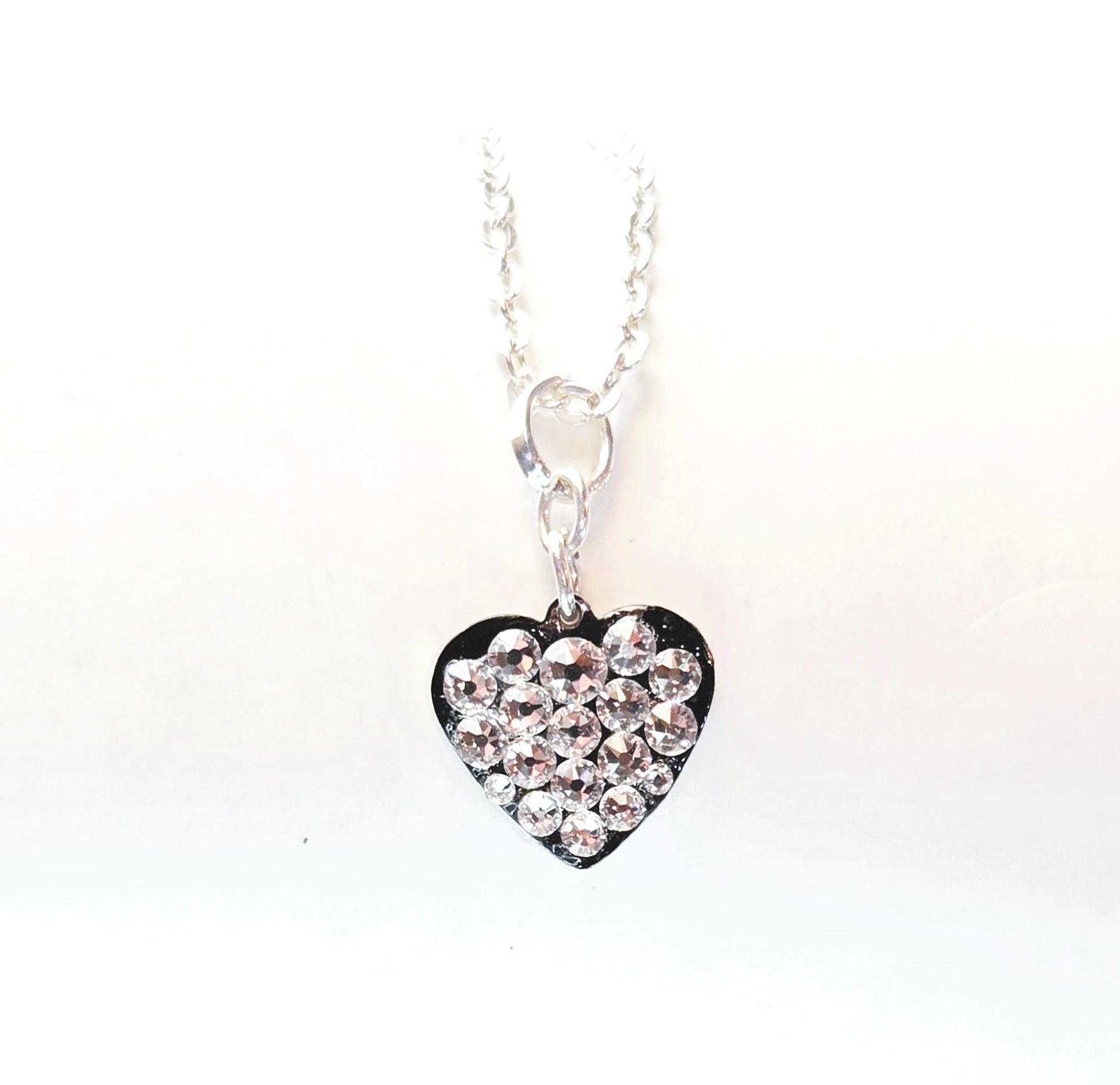 - THE PENDANT IS 1/2" HEART SHAPED THAT HANGS ON A 18" LIGHTWEIGHT SILVER LINK CHAIN.