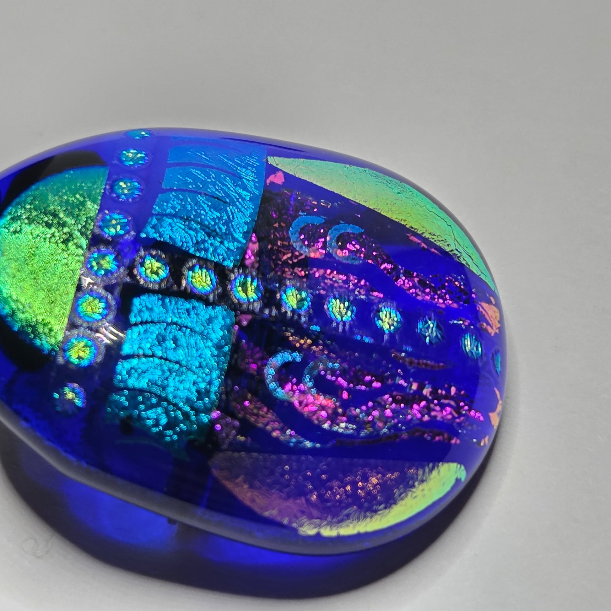 Elevate your accessory collection with this expert-crafted Cobalt Blue Foiled Glass 4-Piece Pendant and Earring Set.