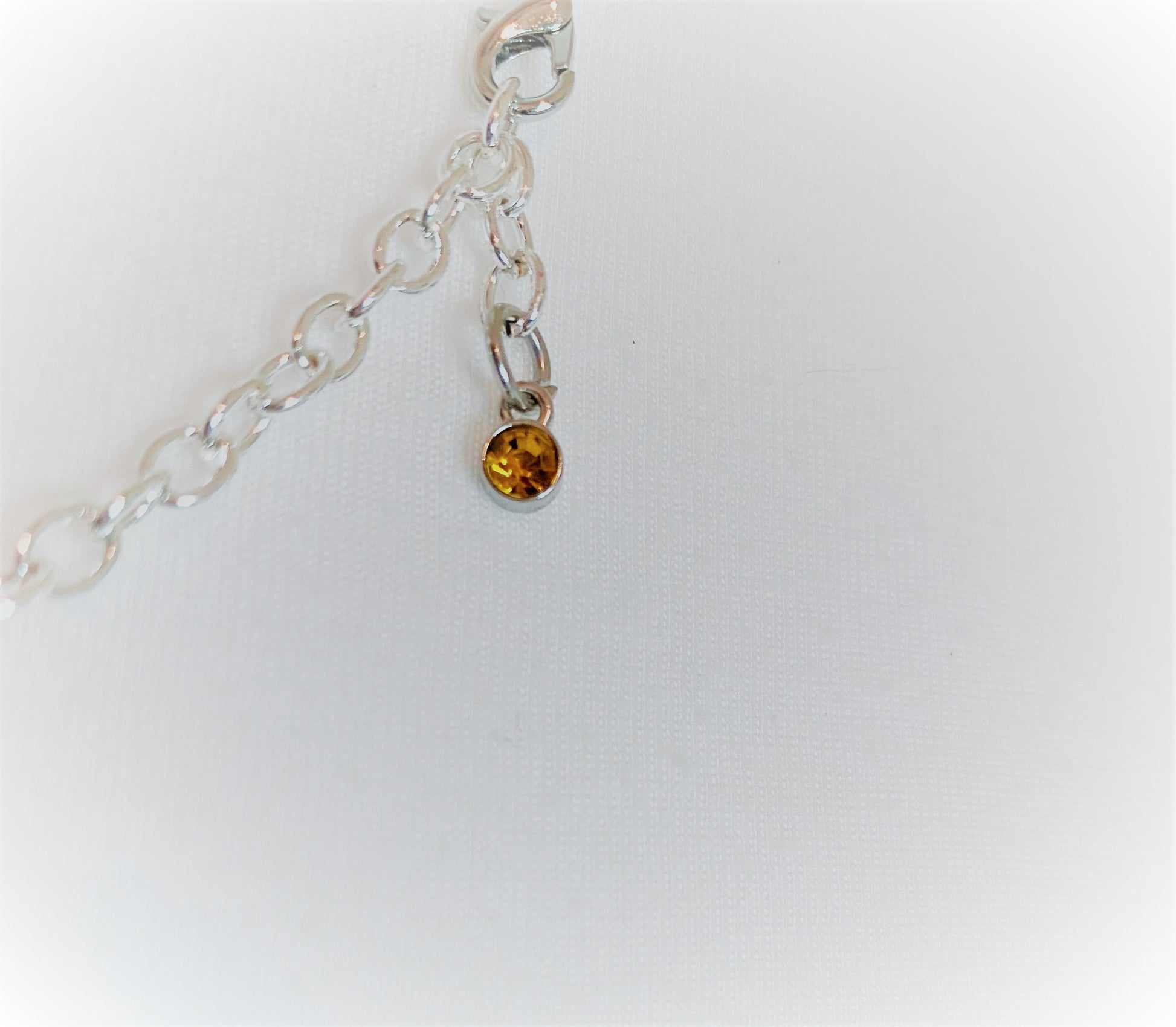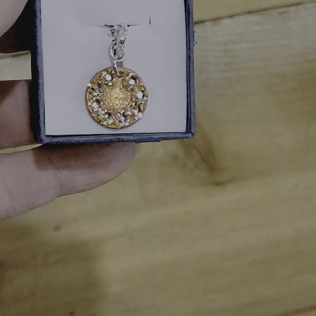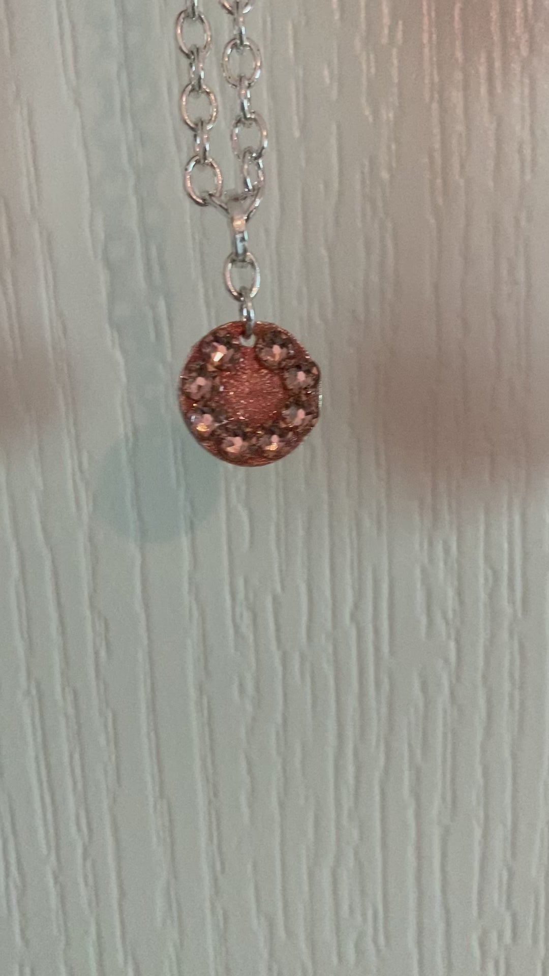 - THE PENDANT IS 1/2" ROUND, AND HANGS ON A 20" LIGHTWEIGHT ADJUSTABLE SILVER LINK CHAIN, WITH AN ACCENT CHARM.