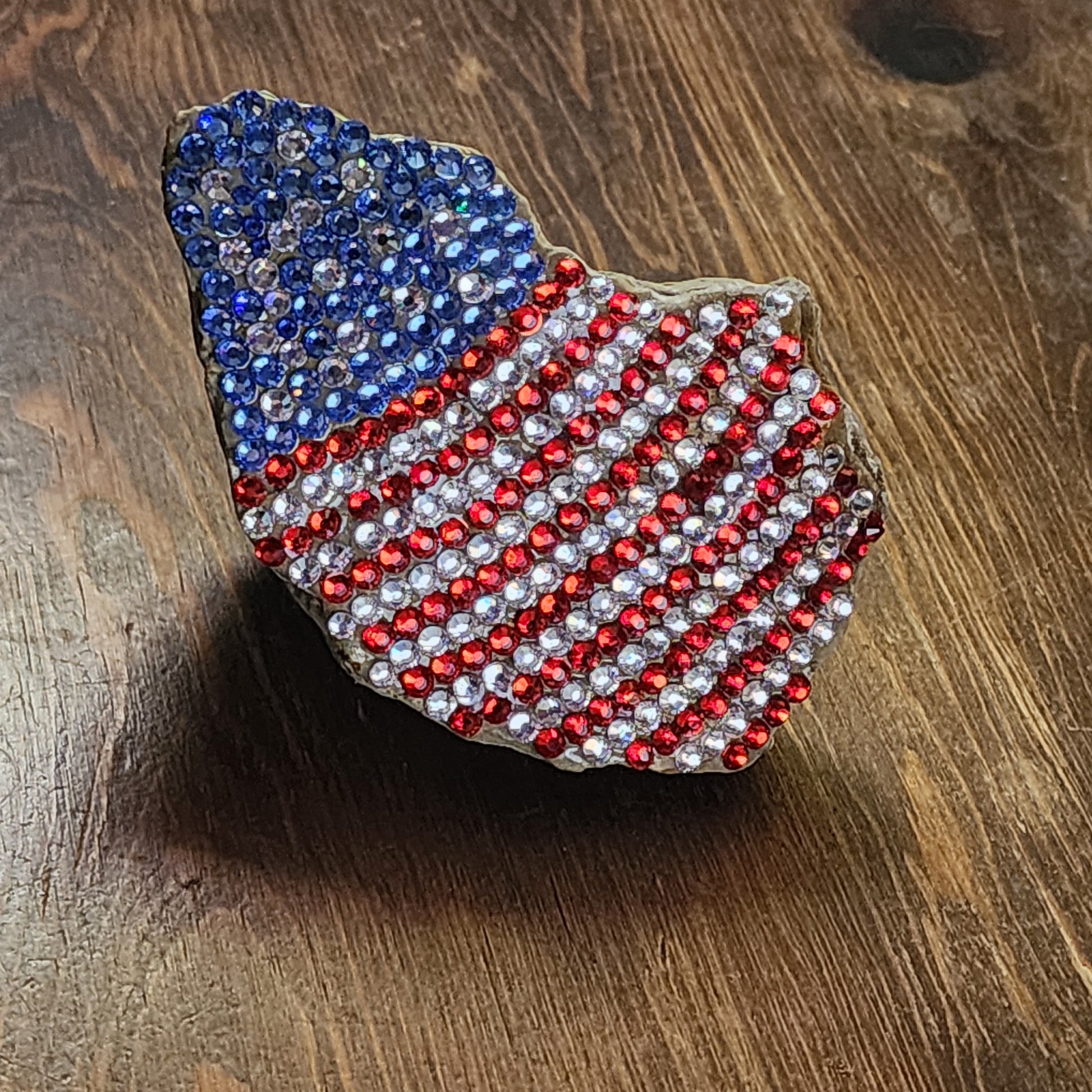 Featuring elegant crystal flats in a refined red, white, and blue flag motif, this one-of-a-kind piece adds a subtle yet powerful patriotic touch to any desk.