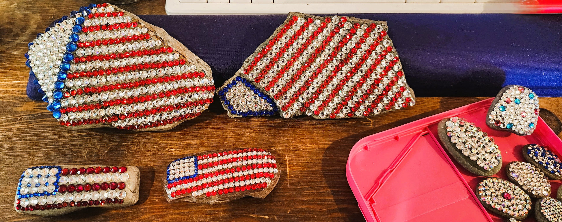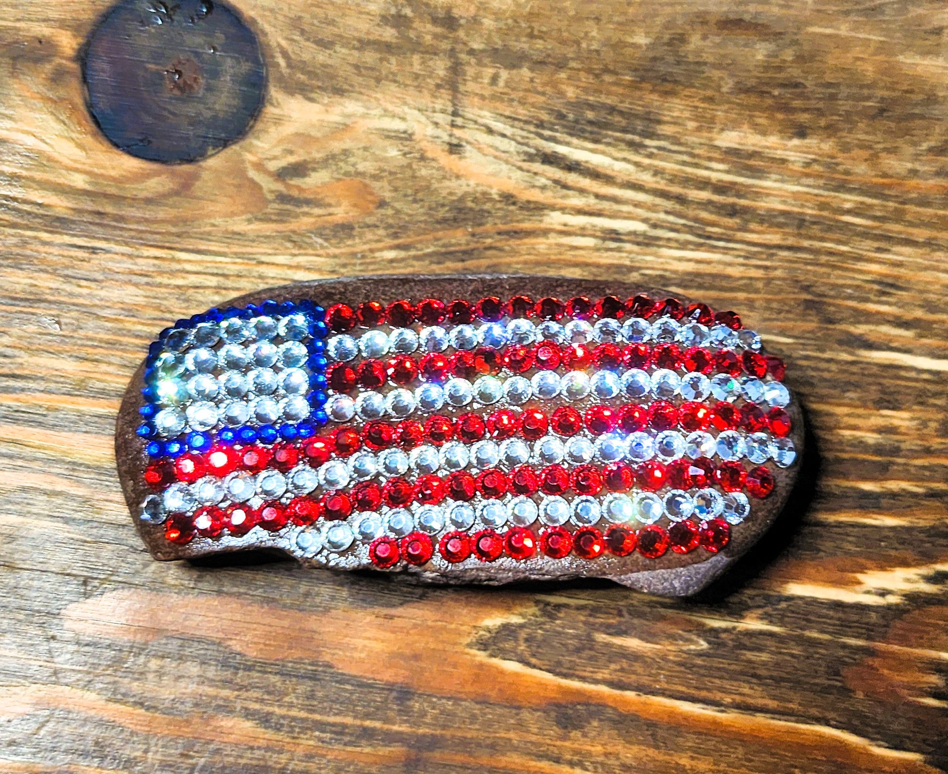 Featuring elegant crystal flats in a refined red, white, and blue flag motif, this one-of-a-kind piece adds a subtle yet powerful patriotic touch to any desk.