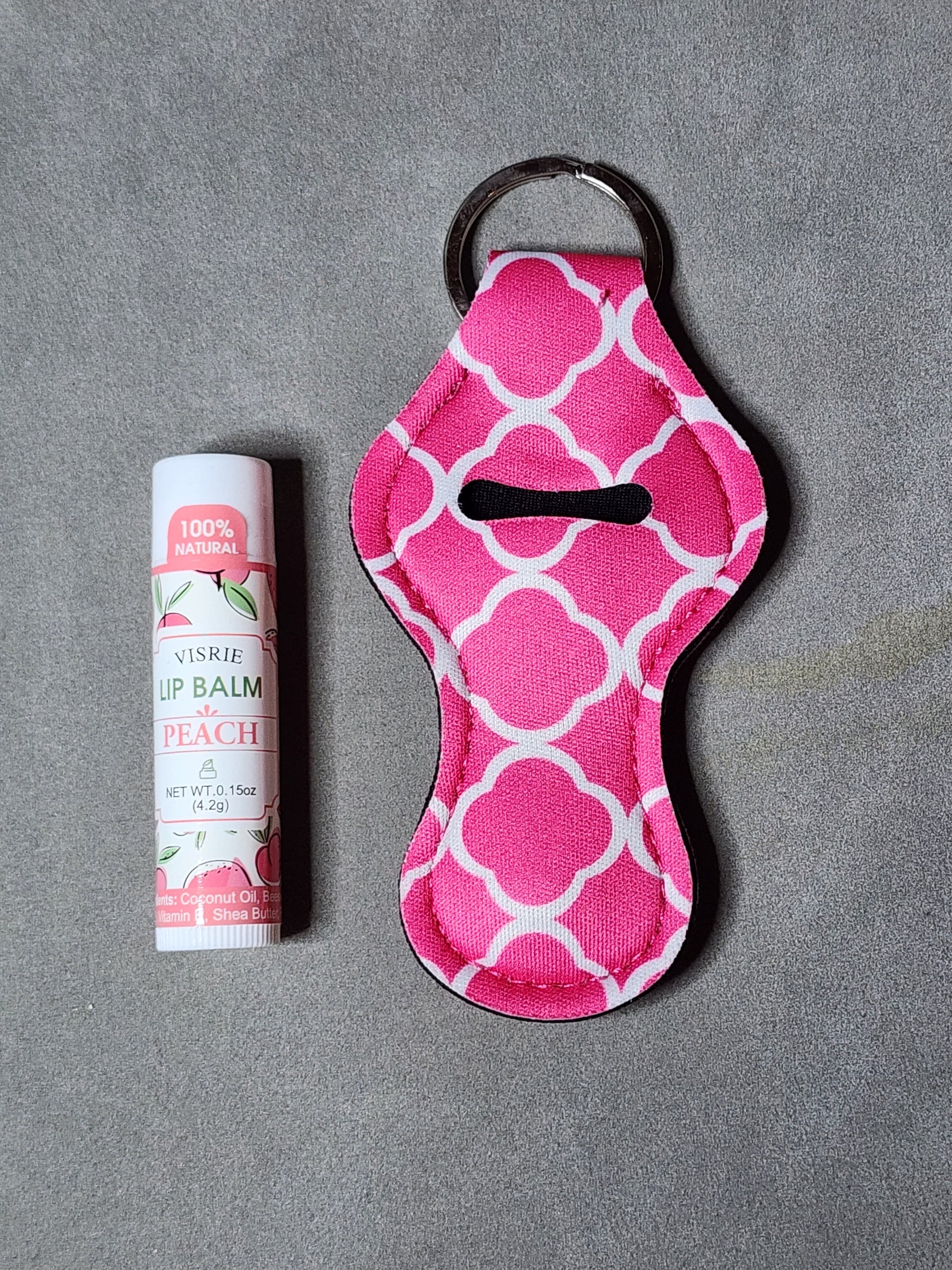 Experience the perfect blend of style and care with the PINK Neoprene Lip Balm Keychain.