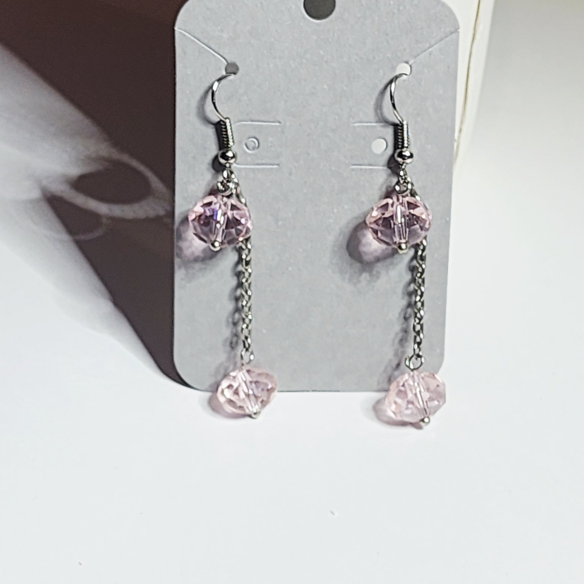 Elevate your look with these Pink Drops Hanging Earrings, featuring a delicate 2-inch silver link chain.