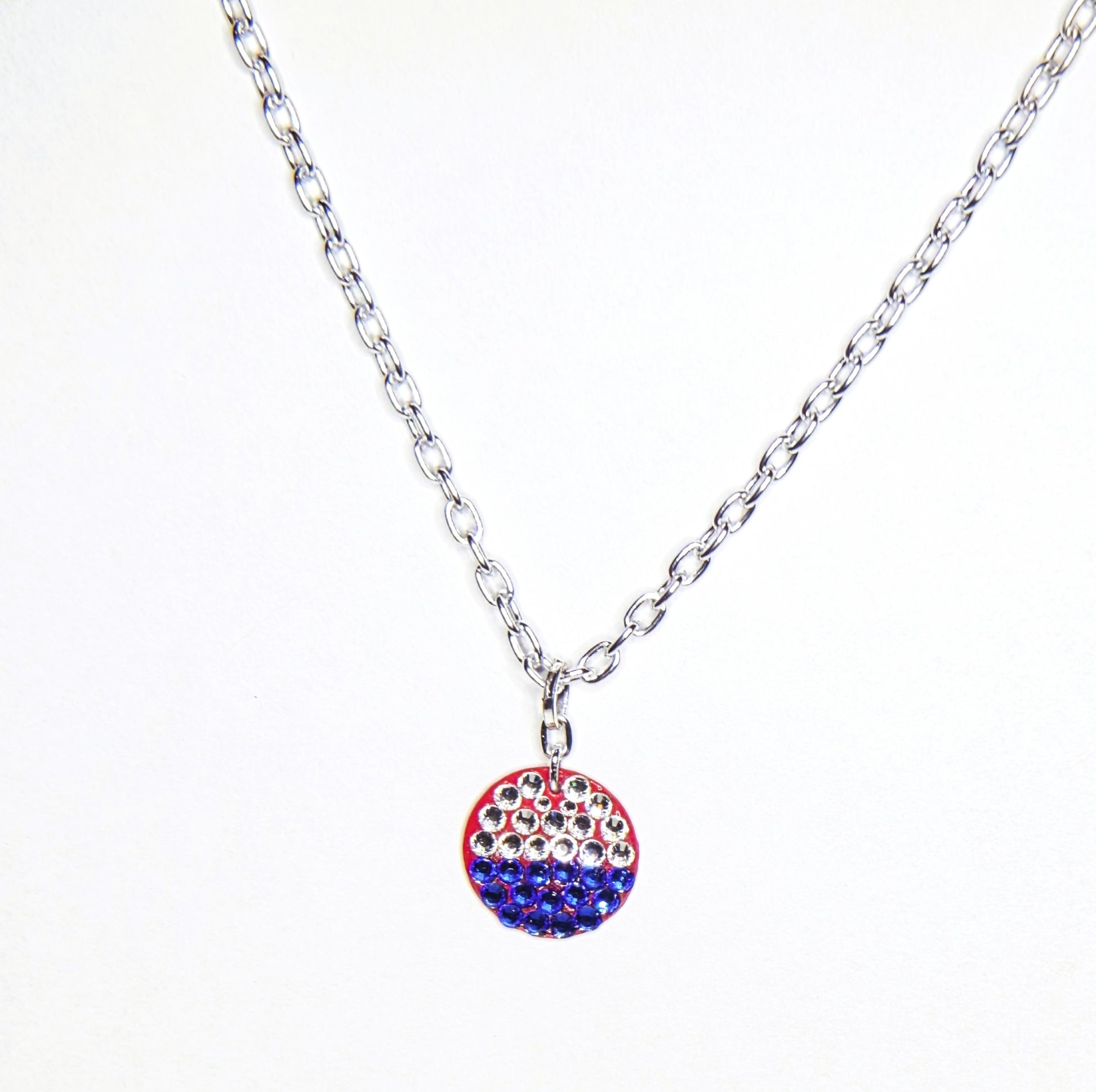 - THE PENDANT IS 3/4" ROUND SHAPED, AND HANGS ON A 24" LIGHTWEIGHT ADJUSTABLE SILVER LINK CHAIN, WITH AN ACCENT CHARM