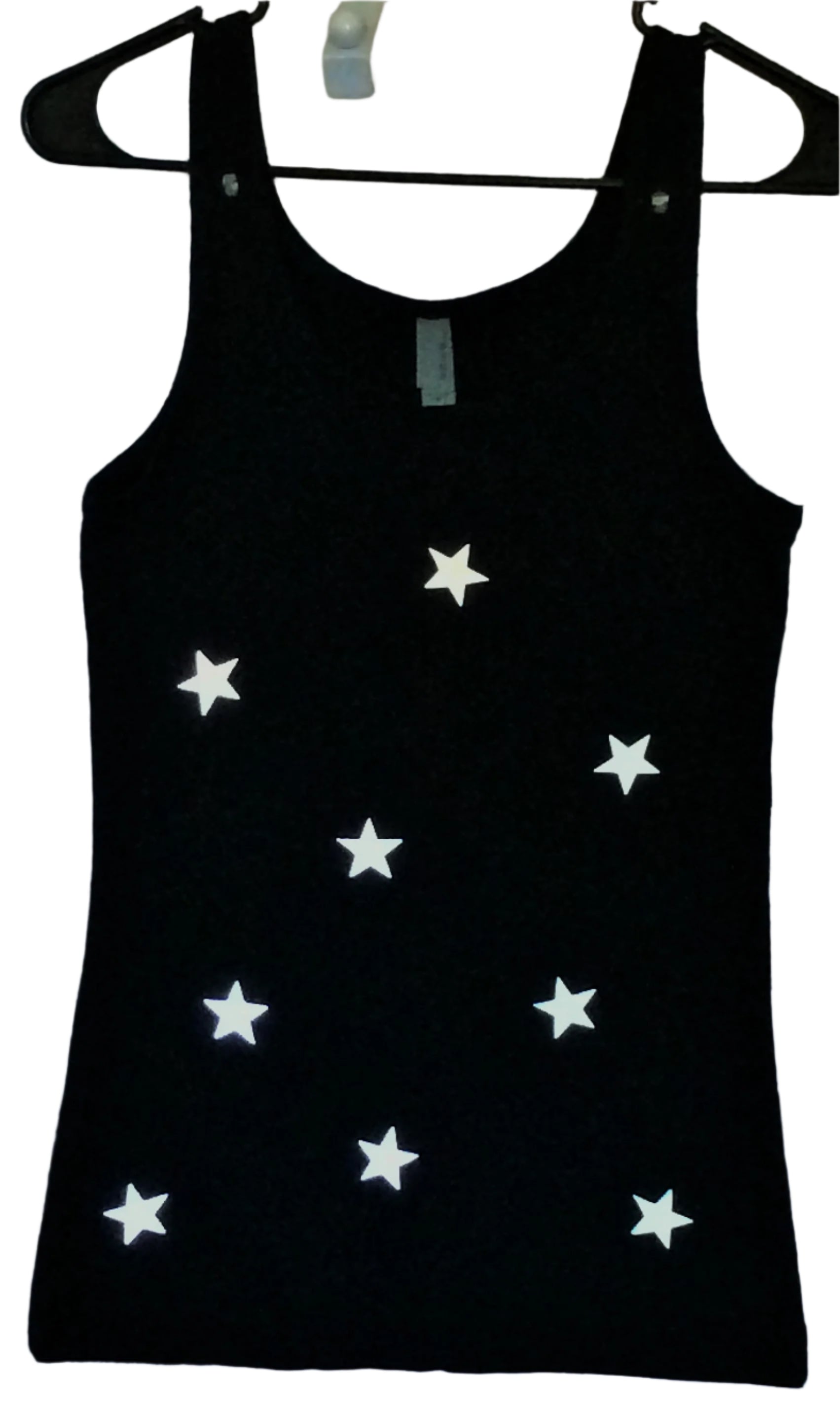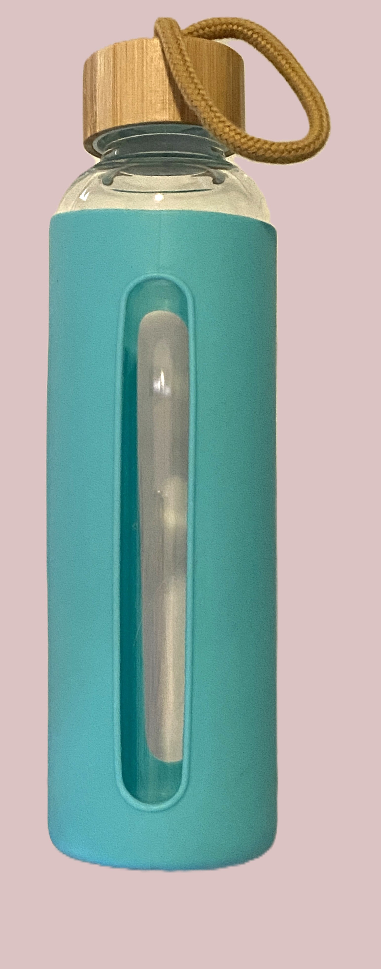 One of a kind Reflective Tank for safety with design and all body accents, comes with a Unique glass water bottle, wooden screw on top with rope handle and silicone sleeve.