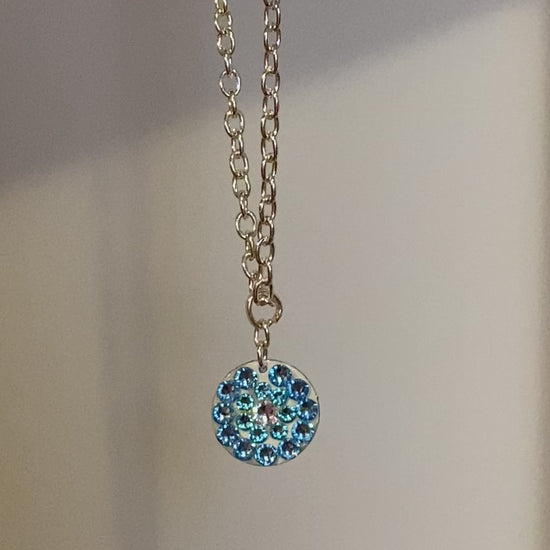 - THE PENDANT IS 3/4" ROUND, AND HANGS ON A 20" LIGHTWEIGHT ADJUSTABLE SILVER LINK CHAIN, WITH AN ACCENT CHARM.