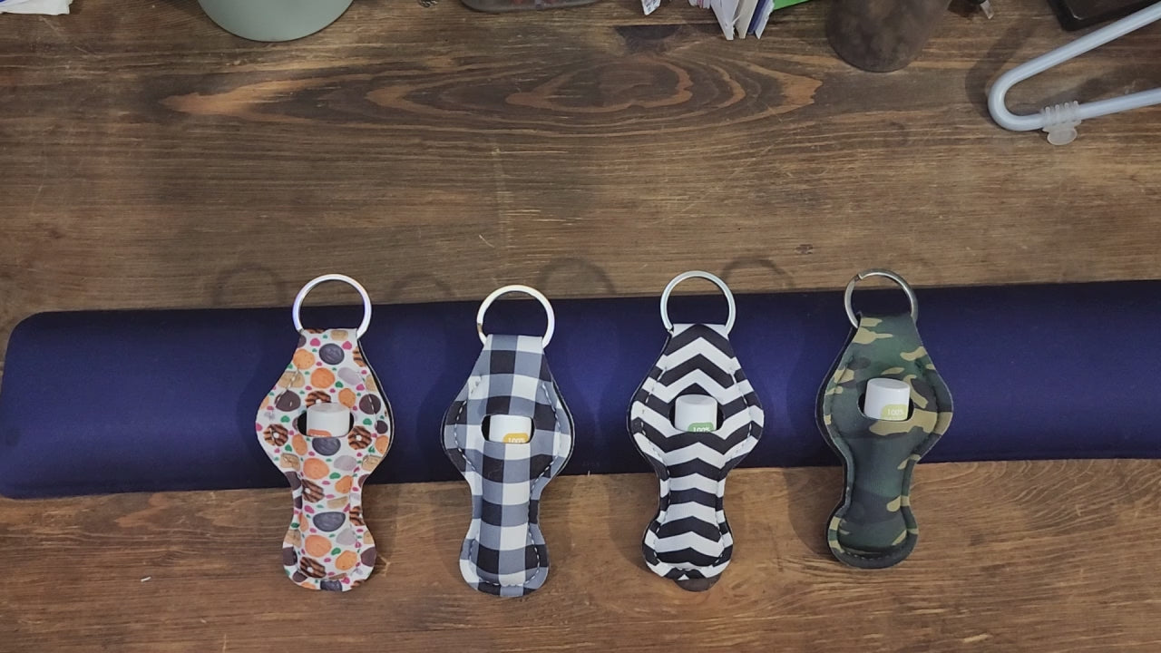 Experience the perfect blend of style and care with the ZIG ZAG BLK WHT Neoprene Lip Balm Keychain.
